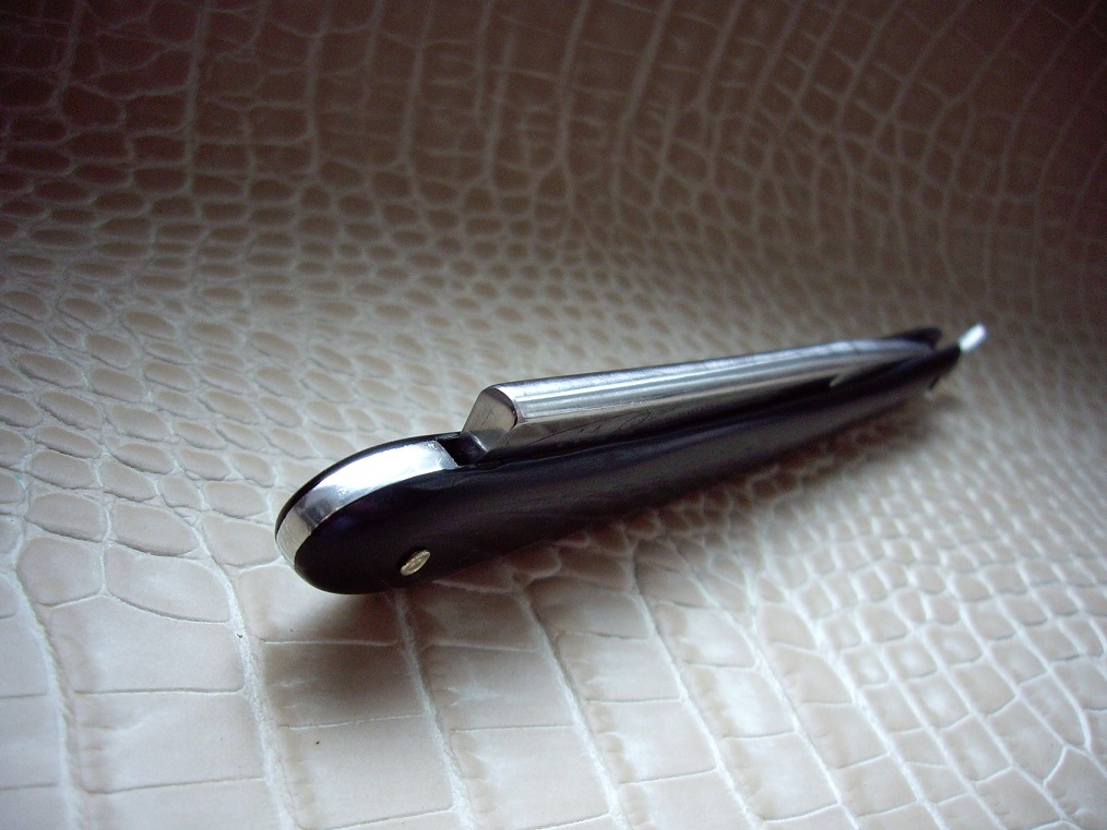 Немного почистил и переобул ручка Рог, клин олово. Бритву не точил .