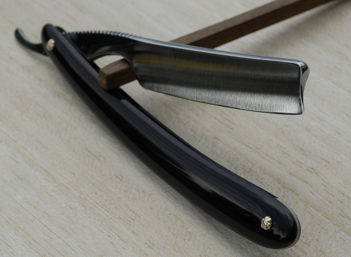 Re: Бритва до... и после...Старая французская бритва NOGENT. Долго лежала у меня. Фото "ДО", к сожалению, только от уважаемого, пропавшего РУМАТЫ. Ручку оставил старую, шпаклевал. Пины - самопал. Клинышек - слон.кость. В бритье просто шикарная, пожалуй одна из лучших, что у меня есть.