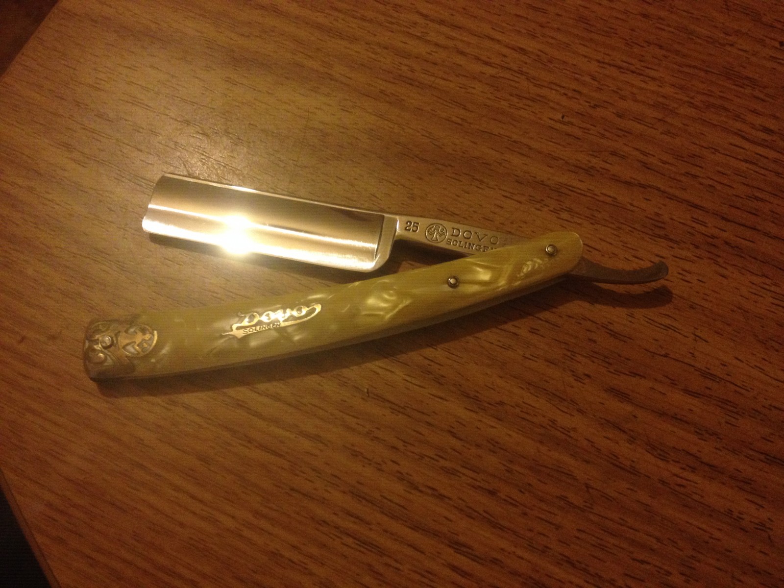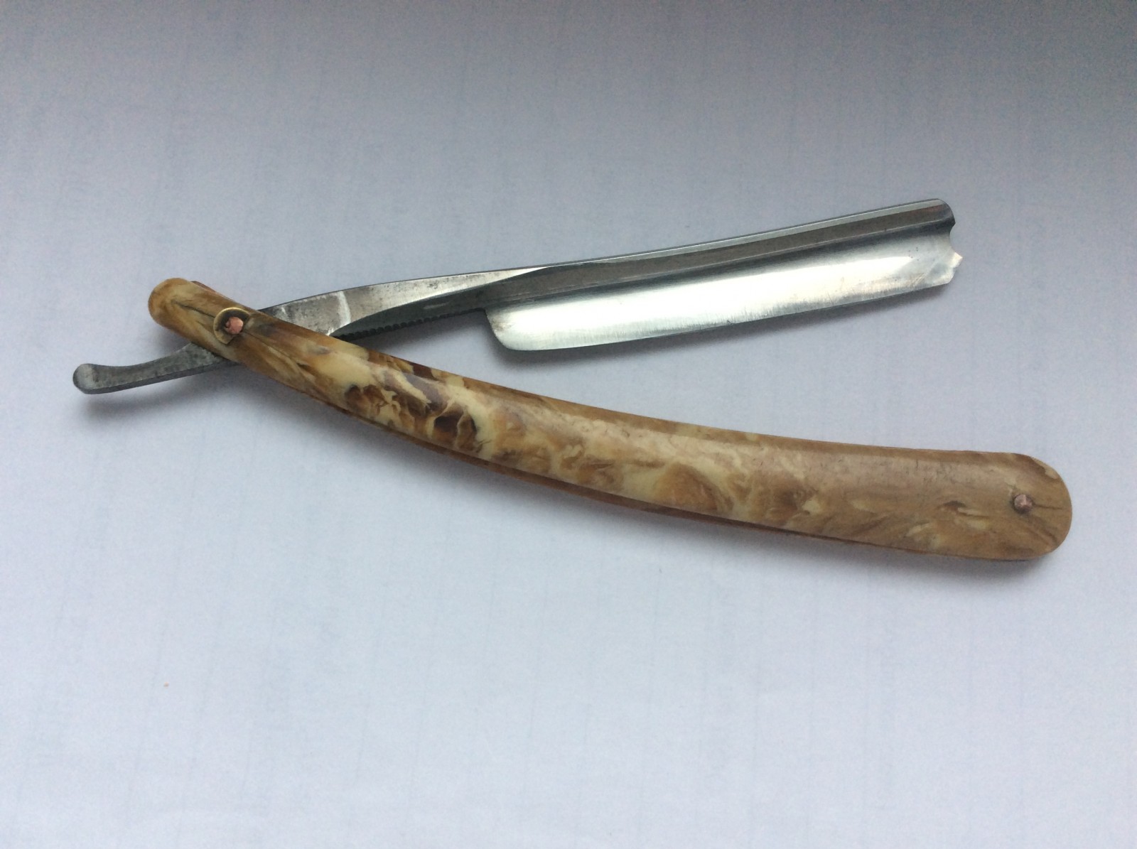 Re: Бритва до... и после...Хорошо постарался, но оставил на полотне, обушке и хвосте черные пятна - даже, если не будешь бриться, то вылезет ржа и грани зализал малость.