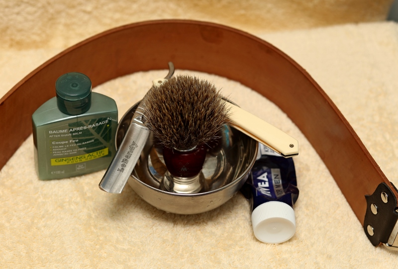 Подготовка: горячий душ. Бритва: Le Dandy, TI, 5/8 Мыло для бритья: Williams Помазок: Muehle Pinsel, вроде серебренный барсук После бритья: Успокаивающий бальзам после бритья Yves Rocher "Женьшень актив для мужчин" Ремень: подвесной от N*X*S Чаша: миска из зоомагазина. Всем удачной недели.