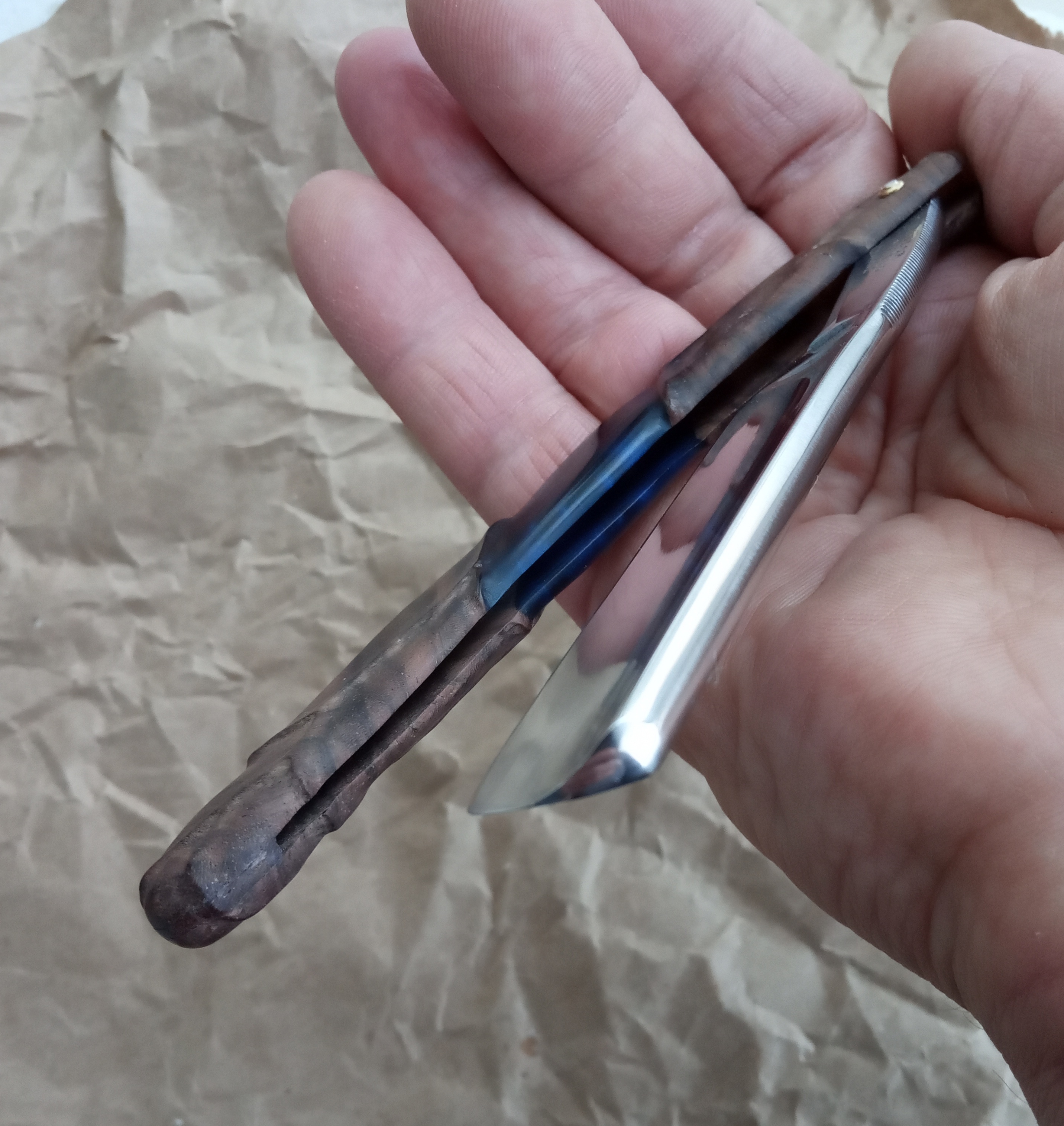 Бритва до... и после...С камнями да, что то переборщил)) Полировку делал дрелью, но старался делать это аккуратно, контролируя температуру. Что бы не перегреть, потом руками.