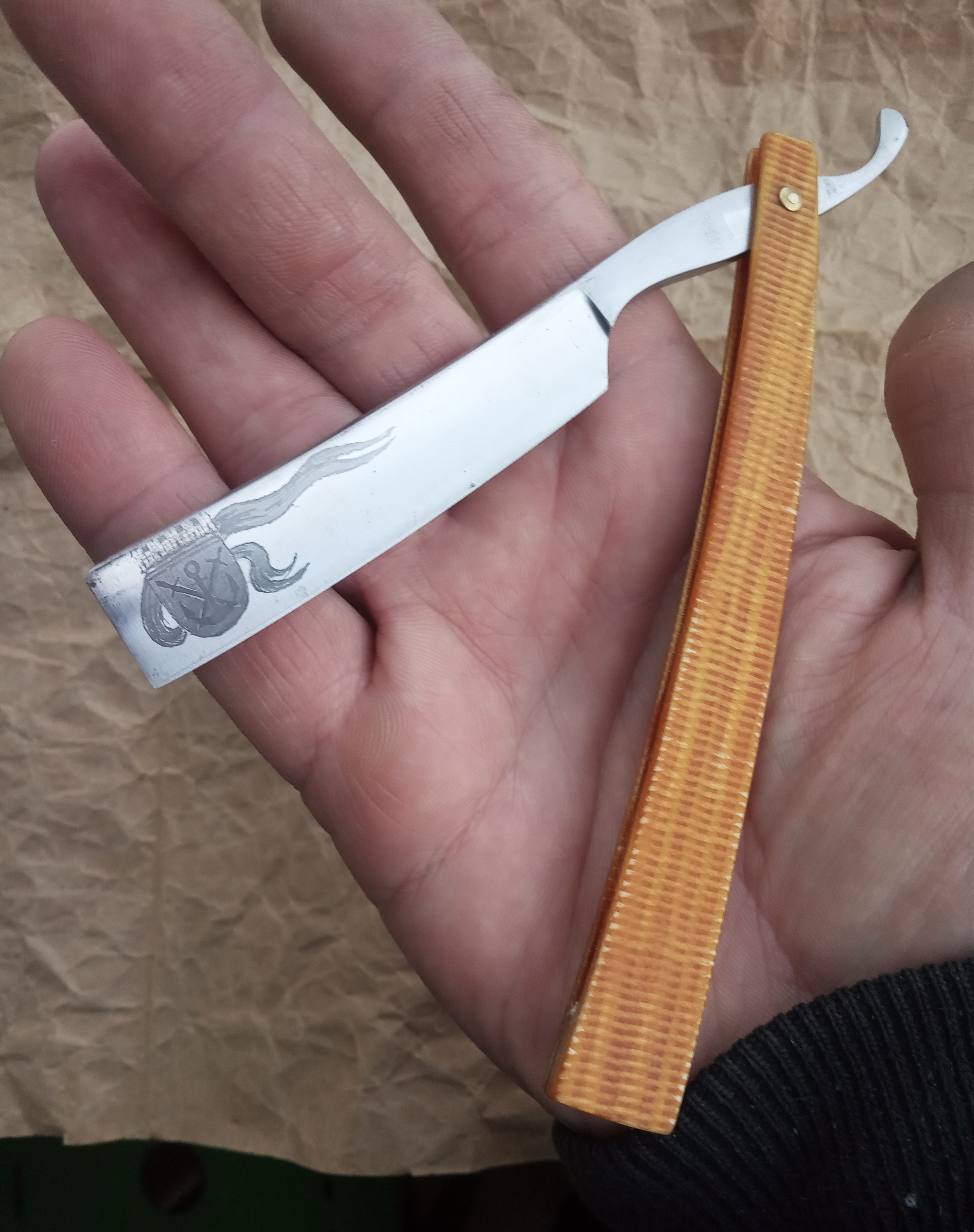 Следы времени конечно остались. Клеймо не сохранилось. 32 года активно мусолю харю клинковой бритвой