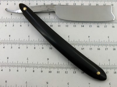 Бритва до... и после...Прпислали в ремонт и заточку. Убрал стабилизатор по просьбе владельца. Изготовил оправу из темного рога. Ну и как всегда протер тряпочкой.