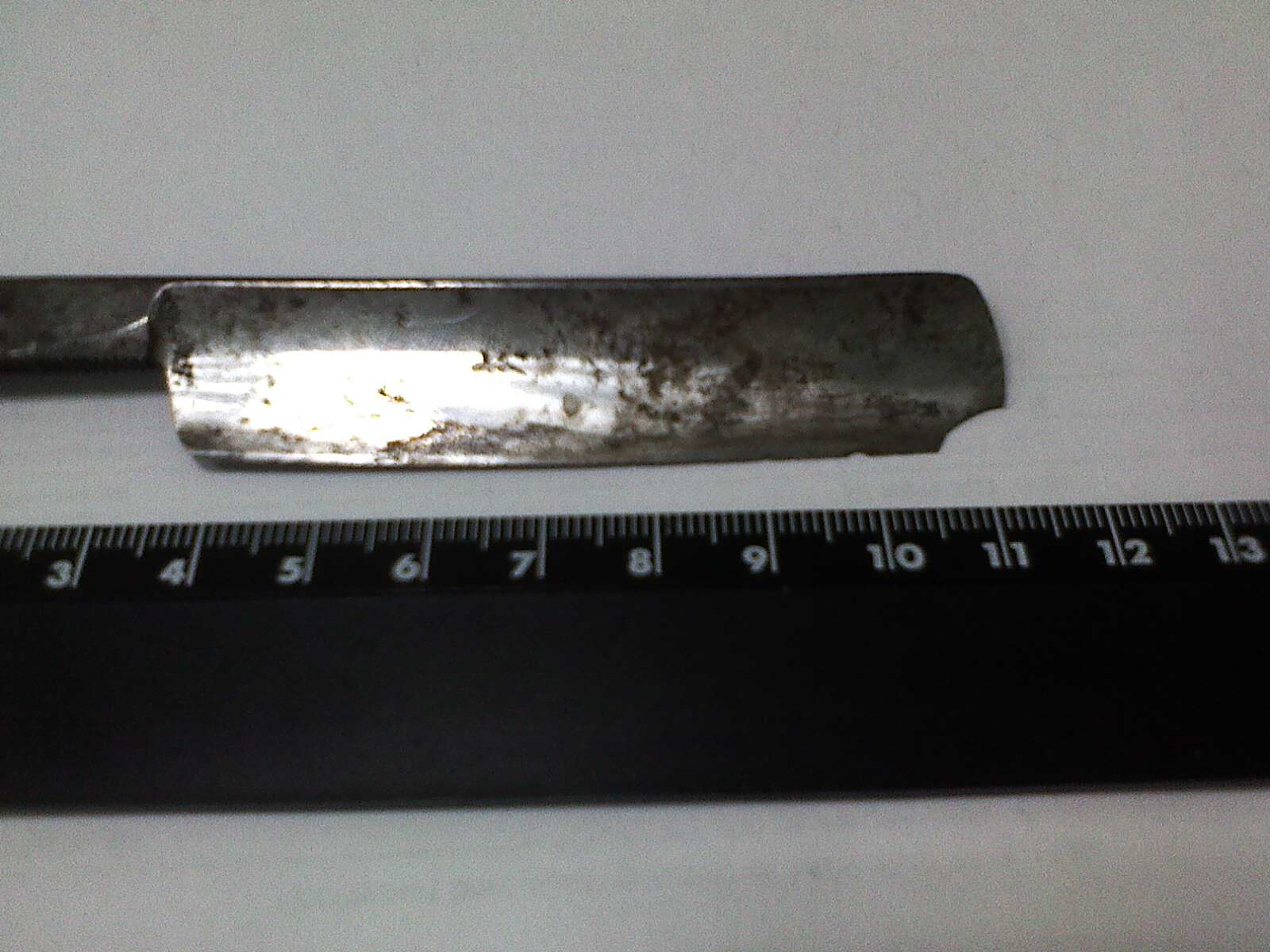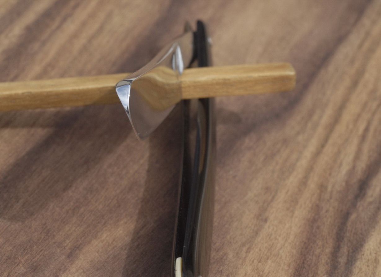 Re: Бритва до... и после...На одной я прямой обух выточил посредине, но обух получился корявым, — первый блин комом. Понял, как нельзя делать, но чтобы отработать технологию, ещё, возможно, придётся провести 3-5 опытов. У Руматы нарочно купил 8 бросовых бритв, так что тренироваться есть на чём, но это не раньше осени.