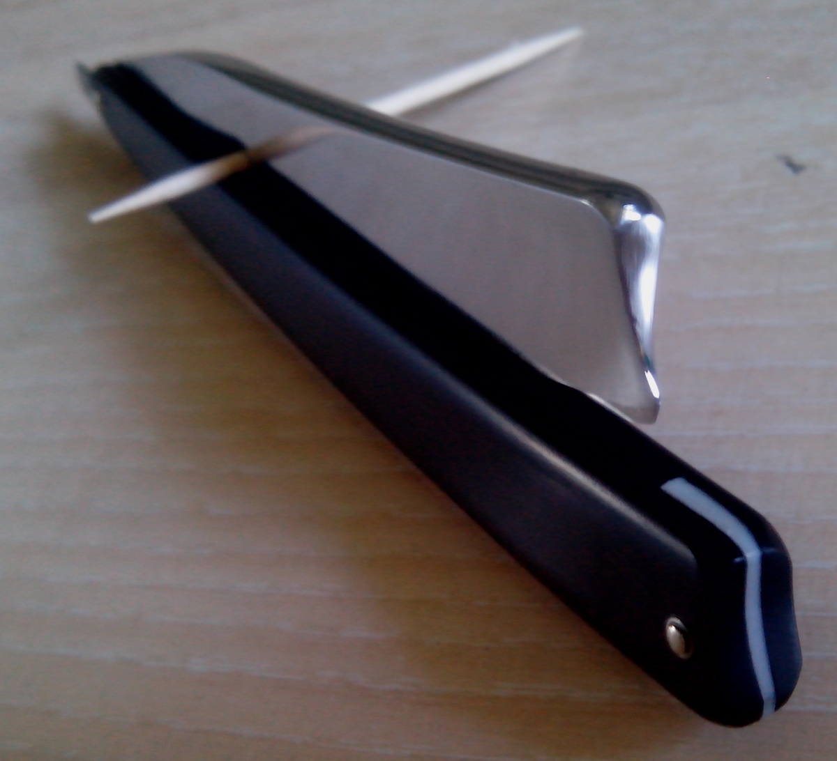 Re: Бритва до... и после...На фото не видно, разрешение стремновато, но коррозия была и на обухе и на рк. Просто не задумался о восстановлении граней, если честно на мой вкус так даже лучше. Но вот при заточке возникла проблема, так как обух был съеден начали стачиваться бока, это привело к не очень приятному зффекту. Ну да ладно. Рано я бритву засунул в эту тему с ней еще работать и работать.. пойду завтра токарный станок мучать.