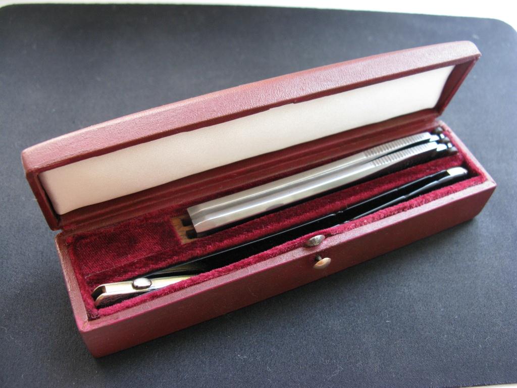 Re: Бритва до... и после...Да вот, пожалуйста. Ничего особенного, просто возни много. Изначально была разбитая коробочка под бритву со съемными клинками на семь посадочных мест и два клинка, сделал из нее футляр под ручку и два лезвия и саму ручку из старых мельхиоровых ручек, латунной дверной петли и пластика. Spoiler Show Здоровому спорт не нужен, а для больного он вреден.