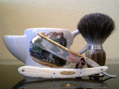 Вот моя двойная классика и двойное удовольствие: бритва и трубка. Ну, с таким мылом иначе нельзя было...