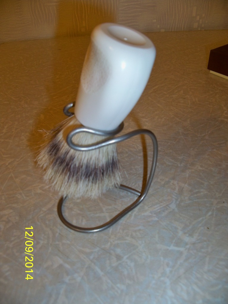 Re: Сваял подставку. Зацените)))Подставка для помазка нужна, а для помазка из барсука просто необходима,этот помазок у меня больше десяти лет,думаю благодаря подставке.Не важно какая подставка,лишь бы помазок сох правильно.Эту можно использовать ещё и как колокольчик (позвать жену спинку потереть,или ещё чего