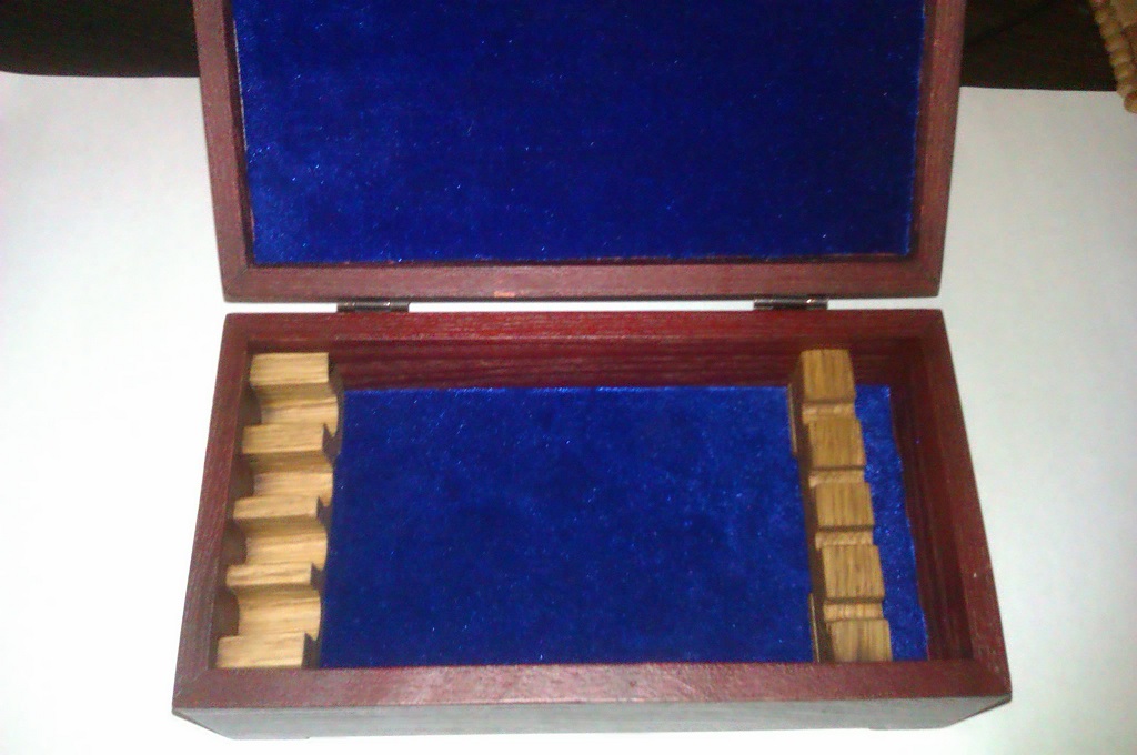 Вот вчера закончил. Теперь осталось бритв насобирать. Шкатулка из ясеня. Перегородки из дуба (специально не красил, нравиться текстура дуба после пропитки маслом.) Ну и синий синий велюр из магазина Ткани. Ну и 2 месяца работы от случая к случаю.
