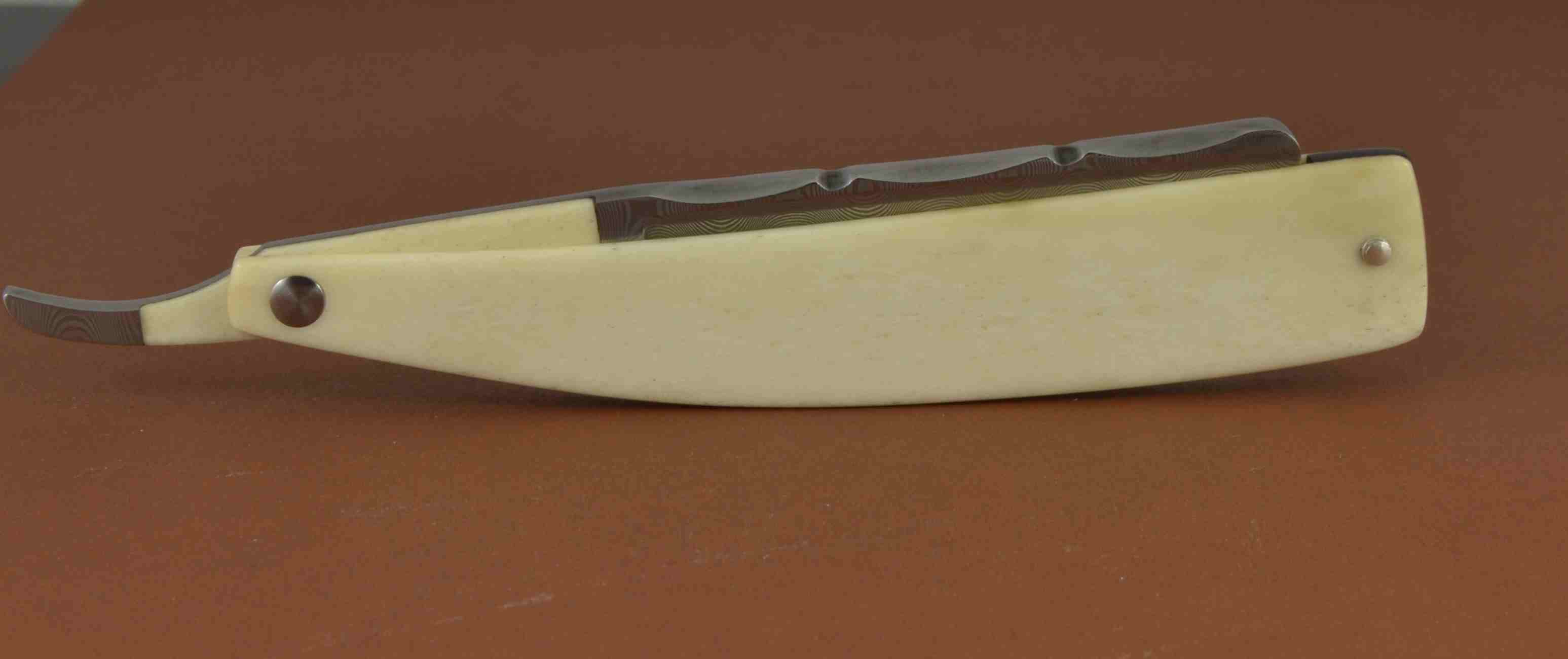 Бритва 7/8 Клинок - Uddeholm Arne ручка - верблюжья кость (что-то прессованное), легко обрабатывается, полируется. Брал на пробу у Boris клинышек - латунь, белый акрил Пины - серебро. Одним ударом дерева не срубишь. . Татарская поговорка