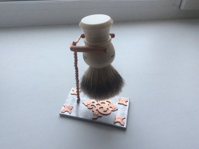Re: Сваял подставку. Зацените)))Приветствую форумчане. Решил и я сваять подставочку для помазка. Нержавейка, медь, бук. Вылизывать не стал, решил оставить для что-то вроде эффекта старины. Да и смысла особого не вижу, медь со временем покроется тёмной патиной. С фото особо не заморачивался, не обессудьте. Оцените что получилось.