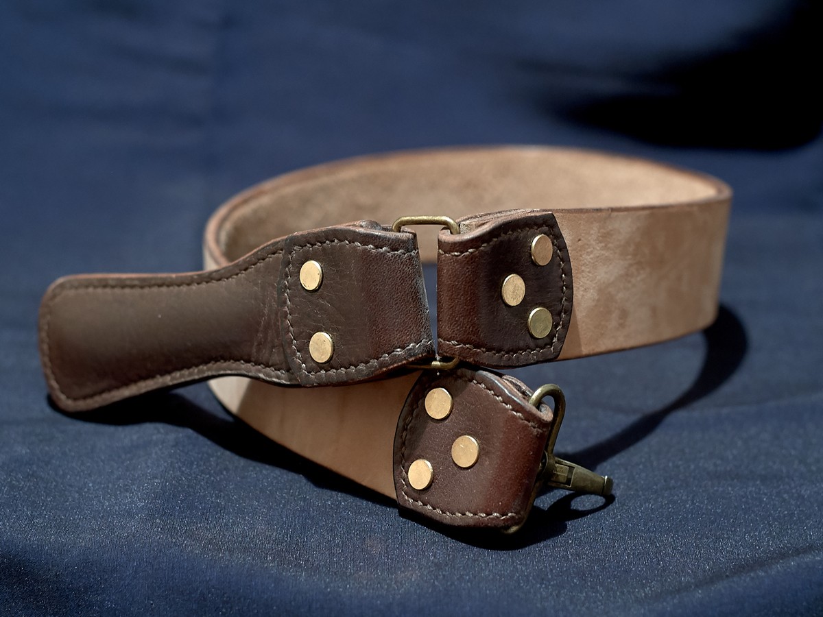 Узкий, (45 мм) шириной и длинный (600 мм.) Ручка объемная, со вставкой внутри. Подвес и ручка съемные, вдруг, чего поменять захочется. Кожа на ремне КРС, 4 мм. Подготовил наждачкой до 2000., отшлифовал стеклянной банкой до получения поверхности, которая бы мне понравилась. На входе - получился. нежный такой замш, очень мелкий. Торцы заполировал с воском, потом помял руками, чтоб не осталось бугорков и неровностей. Обратную сторону кожаной полоски не трогал, плохо понимаю, что с ней делать вообще. Так, чуть причесал наждачкой, чтоб не лохматилось. В деле ремешок показал себя с самой хорошей стороны (ИМХО, разумеется, сравнивать особо не с чем. ) Ремни из дружественного Китая, разнообразные офицерские и солдатские, советские ремни для правки с кольцами с обеих сторон - больше не надо, этот ремень получше будет. Пока делал, пришло в голову осознание некоторых "улучшалок", надо второй ремень делать. -))