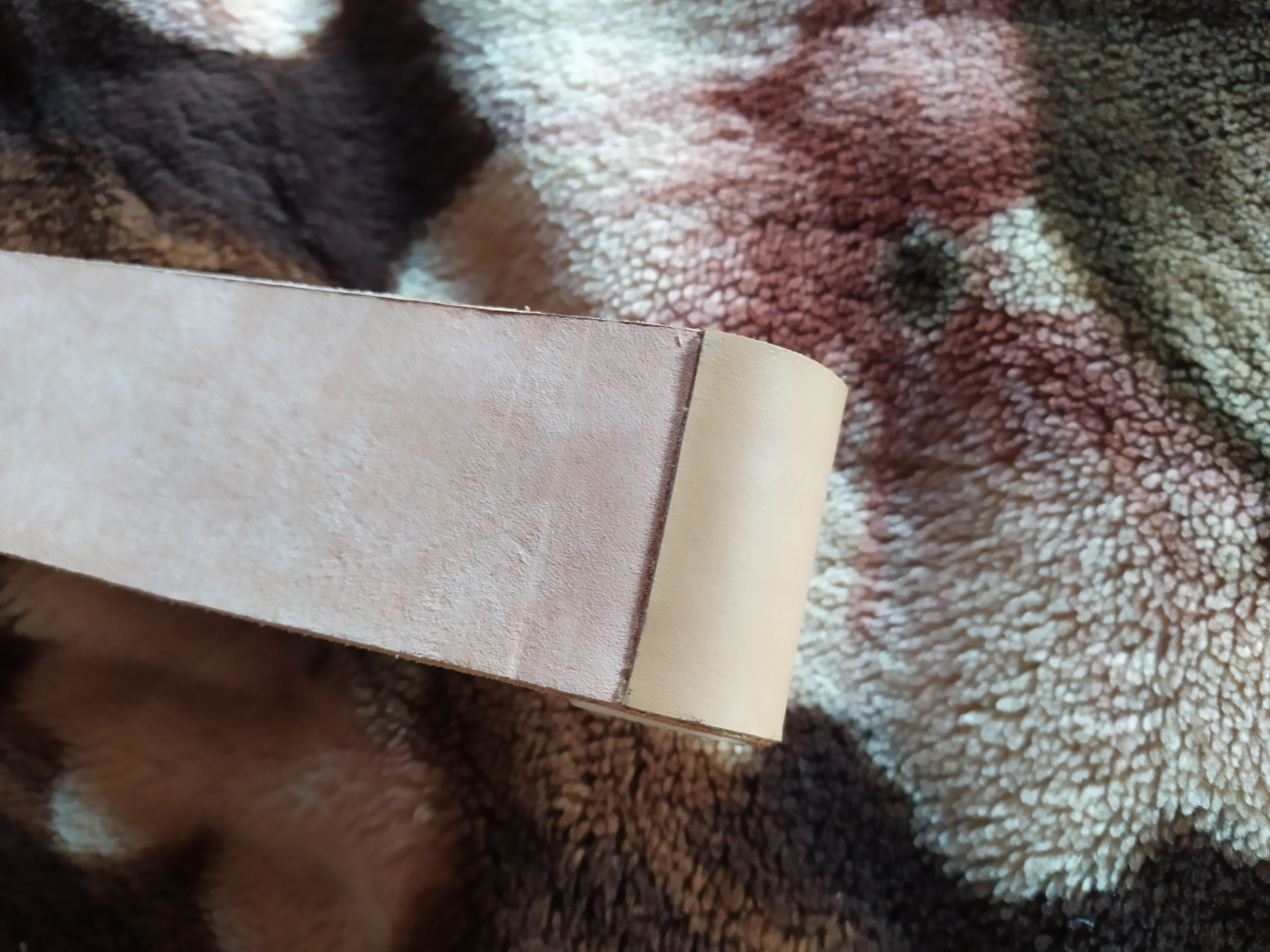Изготовление ремней для правкиВо второй партии добавил пылесос, т.е. после шлифовки, прохожусь по поверхности пылесосом с ворсистой щеткой, высасывая из рабочего ворса пыль после шлифования и потом только чищу микрофиброй, а уже потом поролоном, смазанным костным маслом. На фото как раз видны желтоватые участки, это масло, они уйдут дня через 2-3
