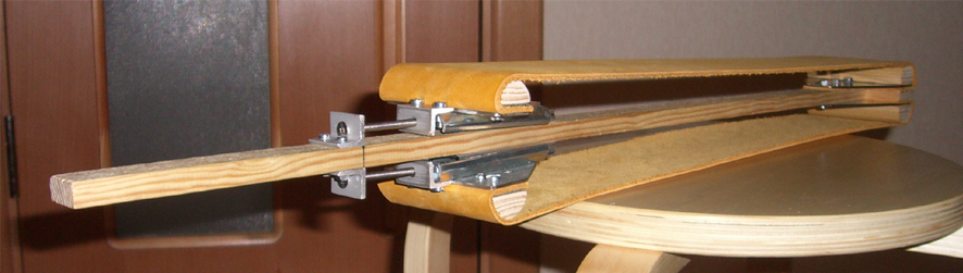 Длина рабочей поверхности 450 мм, ширина 80. Для каждой стороны ремня собственный независимый натяжной винт. Рукоятка в стадии разработки.