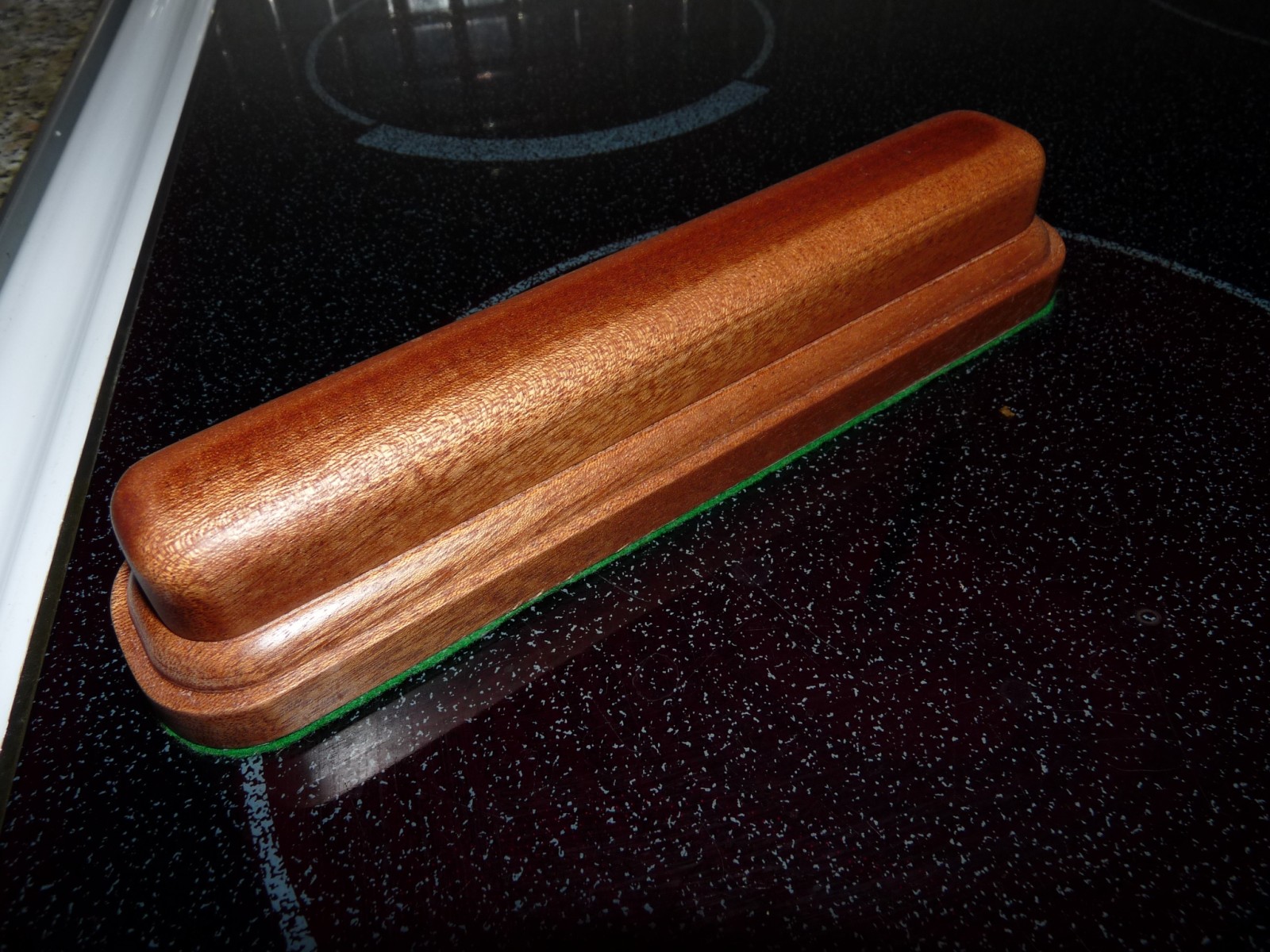 Особого практического значения крышка не имеет, так - антипыль... Материал тот же - красное дерево. Спецом делаю "крупные" фото чтоб посмотреть переливы дерева под светом. Даниш и француский мебельный воск. Поскольку подставка под конкретную бритву от ГВИКа, то все вырезы максимально повторяют профиль и габариты бритвы как у самой подставки, так и крышки - они "облегают" бритву со всех сторон. (Не знаю, нужно или нет, но вот добил для интереса.) PS И да, здесь на фотах сама подставка уже с фетром, неплохо смотрится на полированном итальянском комодике у меня в спальне.