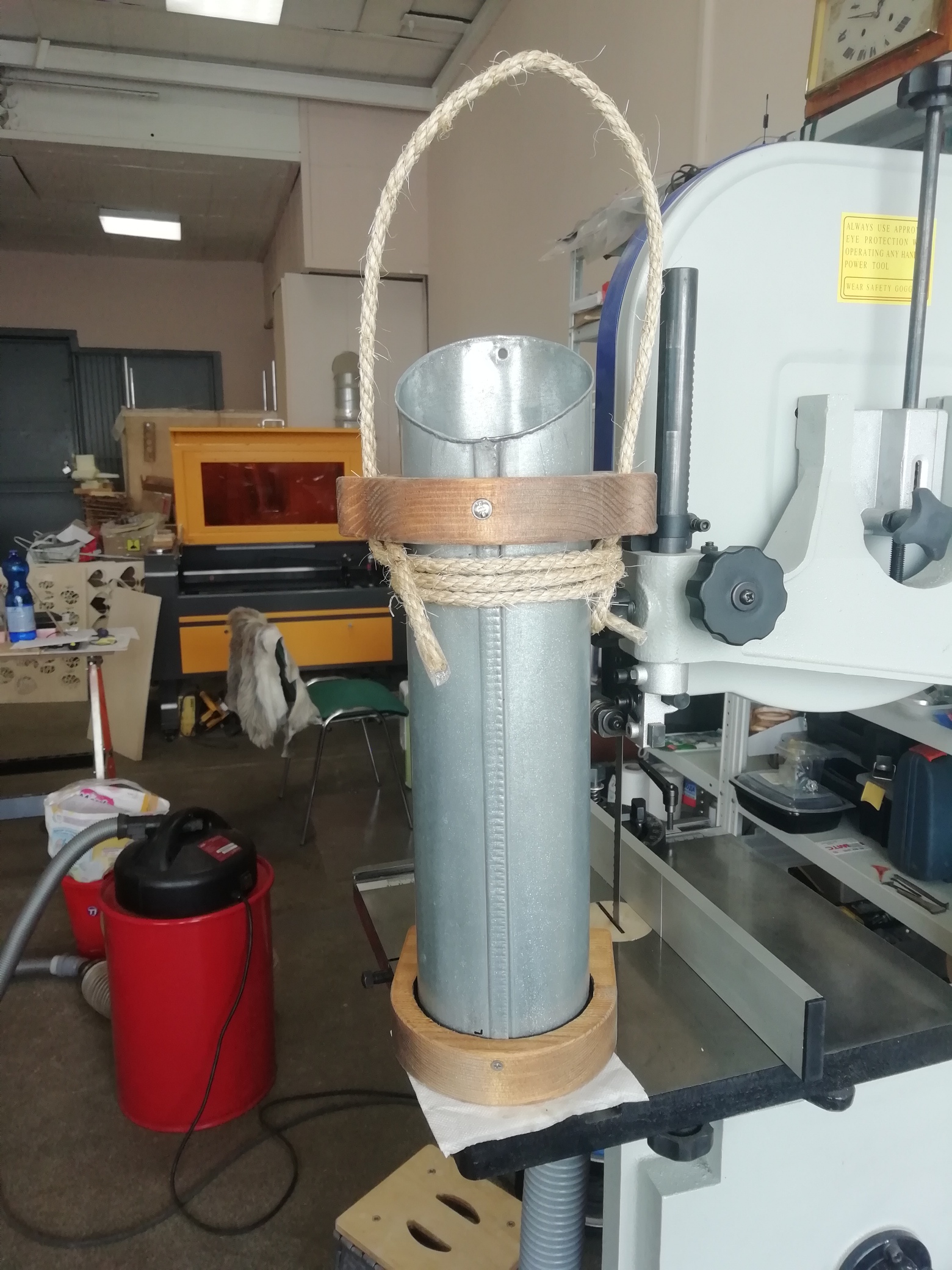 Оцинковка, сосна, масло, саморезы, вервь кручёная (пенька?), на дне кусок ППУ - дно, и разделитель шампуров тоже ППУ (длинные отдельно).