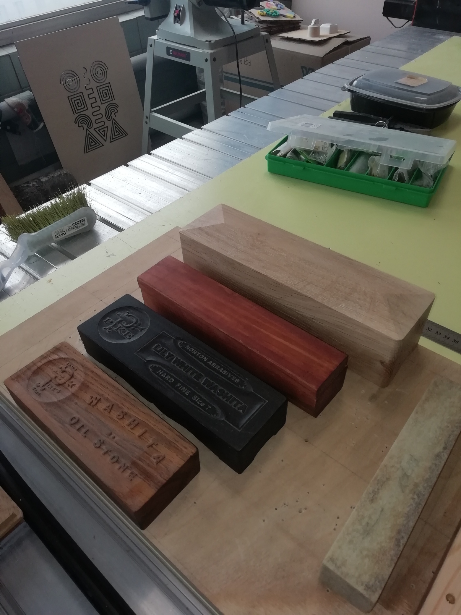 4 футляра для комрада, ныне отбывшего в Персию, для заточных камней в минималистическом исполнении, без украшательств, слева направо: 2 ясеня, сапели, черный орех кавказ (соответственно ЧФ, тюринг, вашита, япнат киита и тома+кома).
