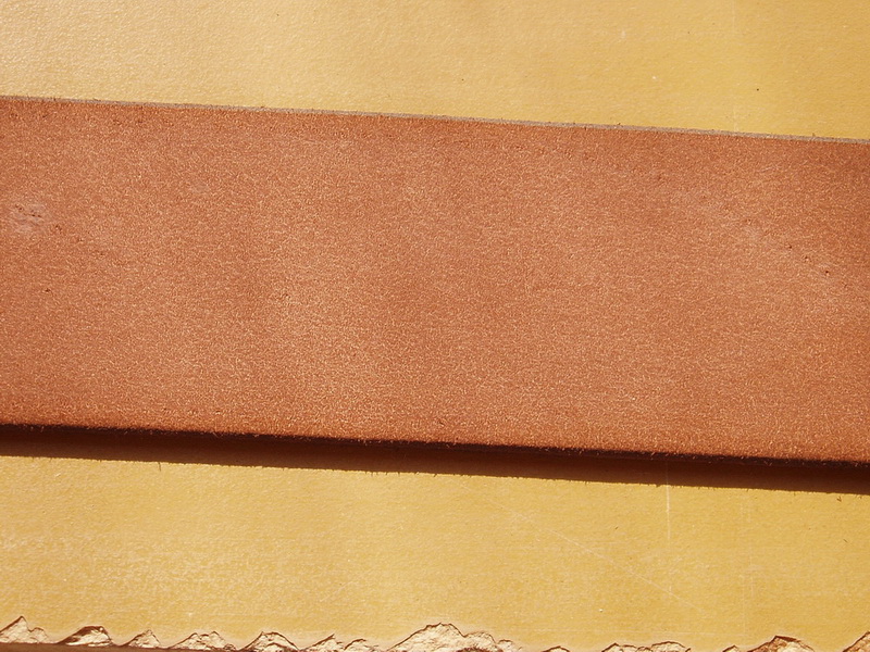 Re: Изготовление ремней для правкиТоже решил попробовать сделать ремень "с нуля". Ингридиенты: старые солдатские кожаный и брезентовый ремни, обрезки кожи и стальная проволока. Кожу вычистил с лицевой стороны от краски и вывел в плоскость на камне (с водой). После подсушки (естественной-на воздухе ), чтобы кожа не превратилась в фанеру, обработал ланолином. Когда убрал шагрень и волну с полотна проявился рисунок похожий на фактуру древесины, красиво, блин