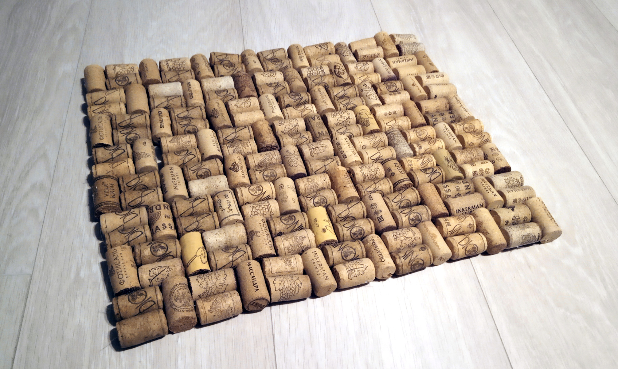 На данный момент с помощью обычной прозрачной лески и шила с крючком сварганил небольшой ковричек из винных пробок и подставку под горячее из пробок от игристого Как видно из крайнего фото, очередная порция сырья уже ожидает новых идей на винном холодильнике