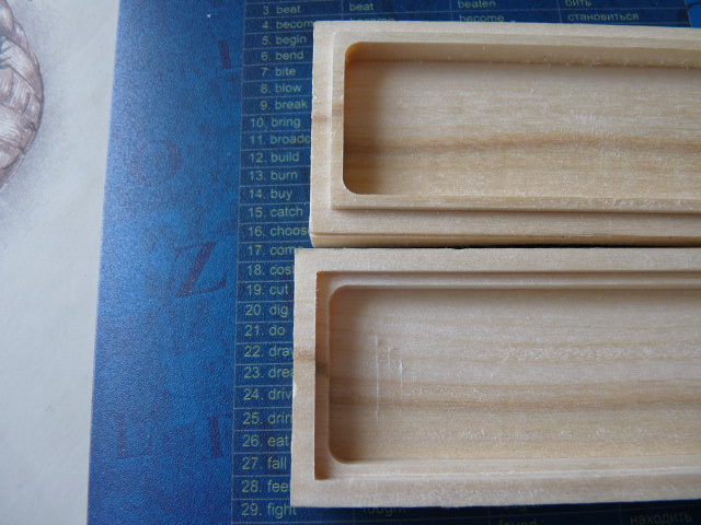 осваиваю методы программирования тут - "2д выборка" (сверху) и "3д - рельеф" (с нижней стороны). Станочек имеет 3 оси, 4-й оси нет, потому 3д - условное. Все программки писал сам (АртКам) - тренинг. На фото нижняя часть короба для хранения бритв в разных ракурсах. Материал - осина. Осиновый наличник из Мерлена. Так как это всего лишь проба, то взял осину, грубоватую фрезу(-зы), да и видно всякие зарезы и прочие недоработки. Не ошкуривал - вид - "как получилось из под станочка". Если делать хорошо, то и материал будет лучше (например дуб - 15 лет выдержки), пластик или... и обработка будет (и ошкуривание и пропитка - даниш какой...), и "нюансов" не будет, конечно, да и ... Можно сделать выемку под рельеф конкретной бритвы "плашмя" в нижней части короба, включая пины, танги... или выпуклый/впуклый рельеф бритвы на крышке с весёлой надписью - горлорез (как там по инглишу, забыл...) ... Вот были бы интересны ваши предложения - что можно изобразить на крышке сверху!? Как варианты надписи типа "Бритва клинковая", или там BENGALL большими выпуклыми буквами во всю ширь крышки, или там гравировку какую?....