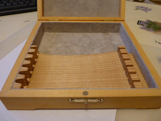Попробовал сделать вкладыш из ясеня, в данном случае, для своей коробки, купленной в хобби-центре когда-то, кажется (на первом фото - то, что было "до того, как...").