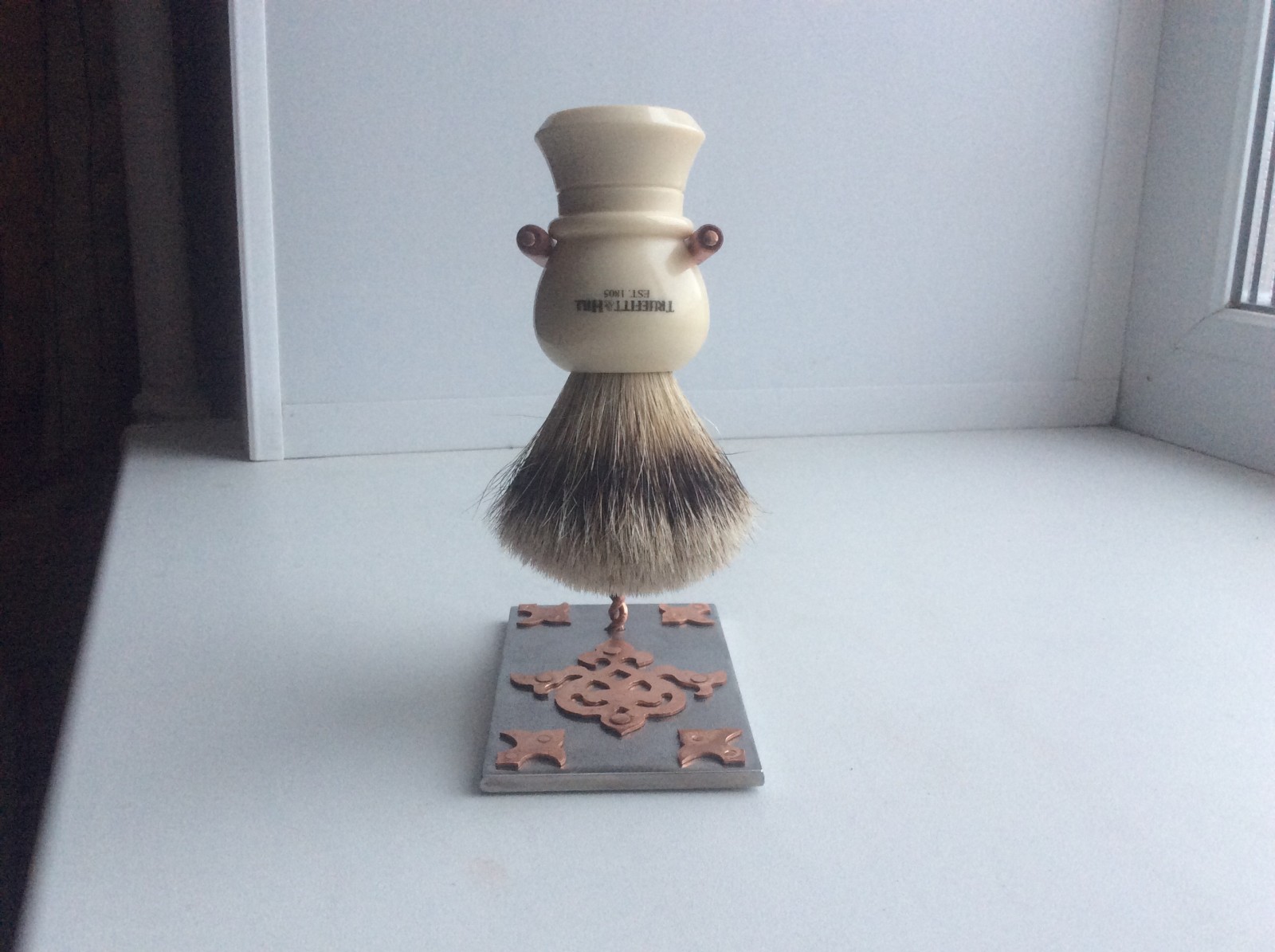 Re: Сваял подставку. Зацените)))Приветствую форумчане. Решил и я сваять подставочку для помазка. Нержавейка, медь, бук. Вылизывать не стал, решил оставить для что-то вроде эффекта старины. Да и смысла особого не вижу, медь со временем покроется тёмной патиной. С фото особо не заморачивался, не обессудьте. Оцените что получилось.