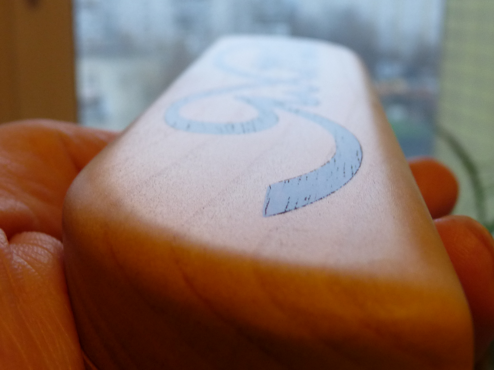 Ну начал с бука (для пробы), потом тут на фото гренадил и парагвайское железное (хотя делал и из монзо и ещё из чего то тоже твердого красного). Оси подогнал супер точно, так, что накладка вставленная неплохо держится, но снять её можно без повреждения краёв выборки отверстий. Но, всётаки нужен доп фикс, скажем неопреновым клеем капнуть на оси те же. Камрад заказал без заовала граней и точной подгонки инструментов - булавки, ручки, зубочистки, пинцета (ну сам захотел доточить по кайфу по месту). Потому толщину оставил +0,2мм и/или +0,4мм толще оригинальной толщины (3.4мм) накладки. Отсюда и пОрты инструментов не везде открылись, ибо вырезы были сделаны на макс глубине 3,6мм. В общем - флип это всё, но мОгем.