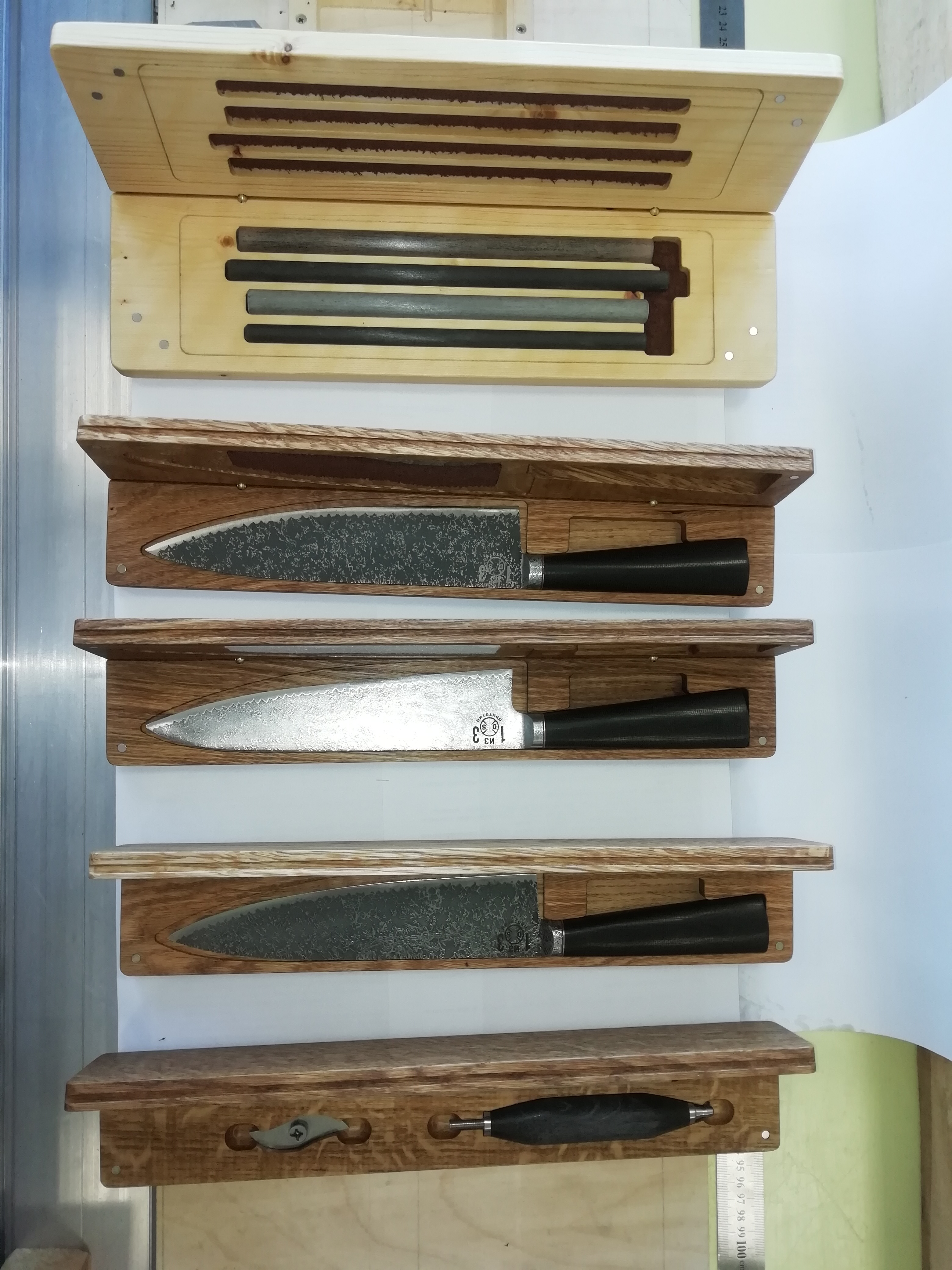 Процесс изготовления изделий околобритвенной тематикиА вот футляры для 3х еретических тут ножей и 5ти циркониевых ( Микрооксидированный титан-циркониевый сплав) мусата: