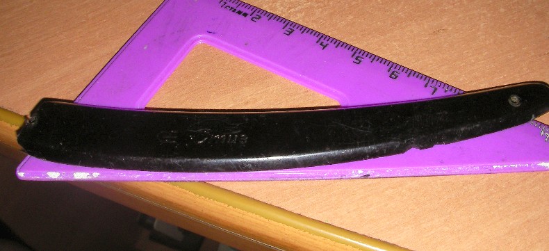 Про ментовского стукачка я так и быть пропущу... на личности переходить не будем.... значит бритва была мною приобретена на развале за 30 рубликов... без какого либо опознания на эрле.. рукоятка из черного пластика выведено "Стиз"... куки с надписью остались.... эрль слегка убран на наждаке сверху и снизу как заметил unsui Жить, как говорится - хорошо, а хорошо жить - еще лучше