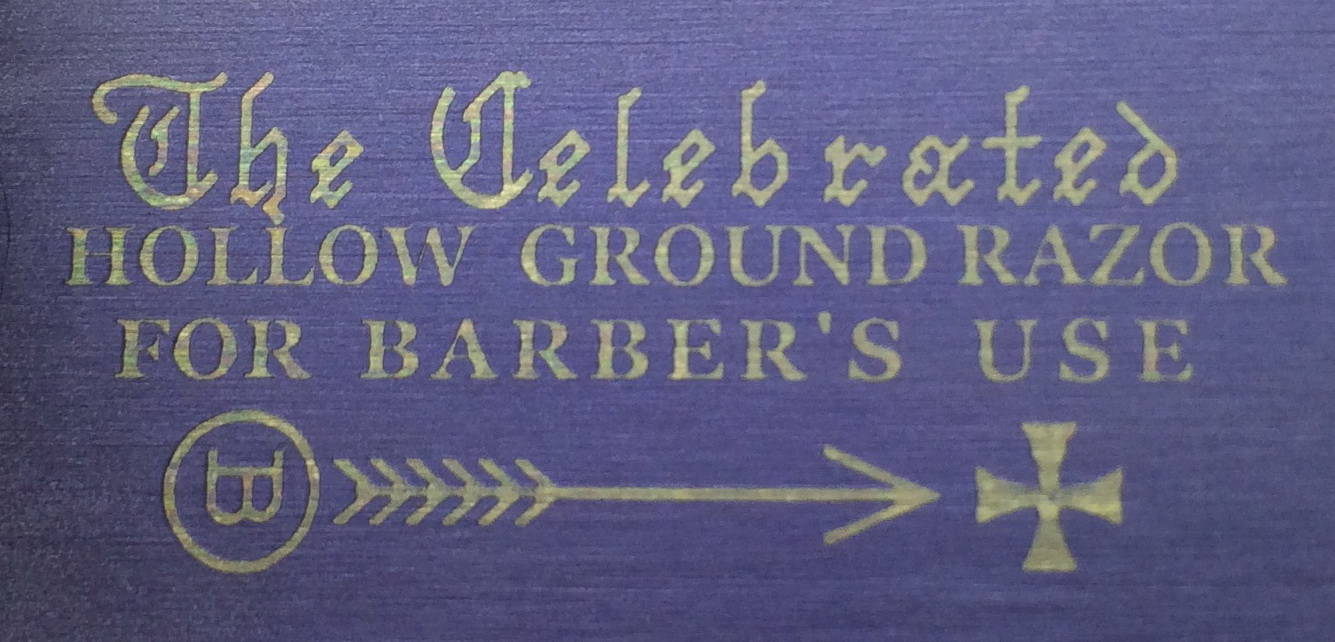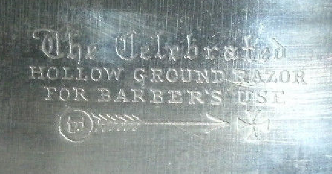 А по поводу стрелы. Вот глянь две разные фотки от старых бритв (выше) в одной явно видны тонкие палки. А у другой... кажется как у тебя, НО а м.б. раствор стек в капли по углам. Тут можно долго спорить. А по поводу оперения. Количество перьев зависело еще кстати и от товара. На стамесках по моему было 3 пера. Сейчас искать лень - но это страница каталога рекламная Батчера. Там разные лого