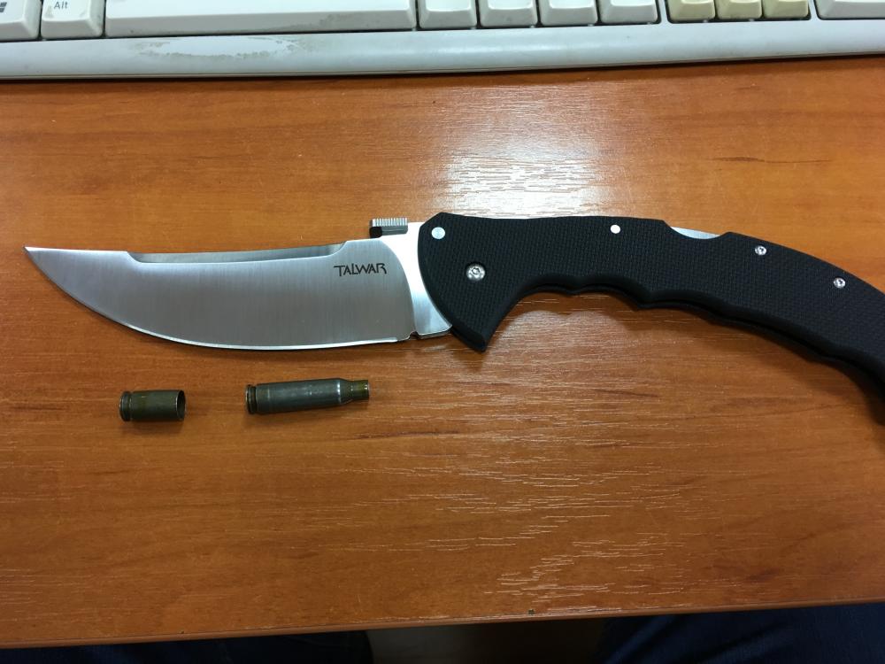 Re: Наши ножиДавно хотел себе большой складень и вот приобрел. Cold Steel Talwar, лезвие 5,5 дюйма (14 см), в карман джинсов влазит, сидеть не мешает, сталь AUS-8A, бумагу из коробки крошит со свистом. А какой щелчок при открывании!!!