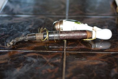 Насчет глины...это нетипичный материал для изготовления "классических" трубок, после открытия вереска(аки бриар) пенки и кукурузы об них забыли и перекрестились, они ужасно непрактичны, хрупки и требуют очень бережного к ним отношения! т.е. вариантов немного либо глиняная сувенир либо пережиток прошлого, с курительным инструментом мало общего, разве что как выразился Олег Бритва "для духа эпохи" Ваш же "экспонат" меня сбивает с толку...именно материал, возможно его делали как раз во время дефицита сырья, т.е. либо блок бриара с невыразительным рисунком, либо "фрукт"))))