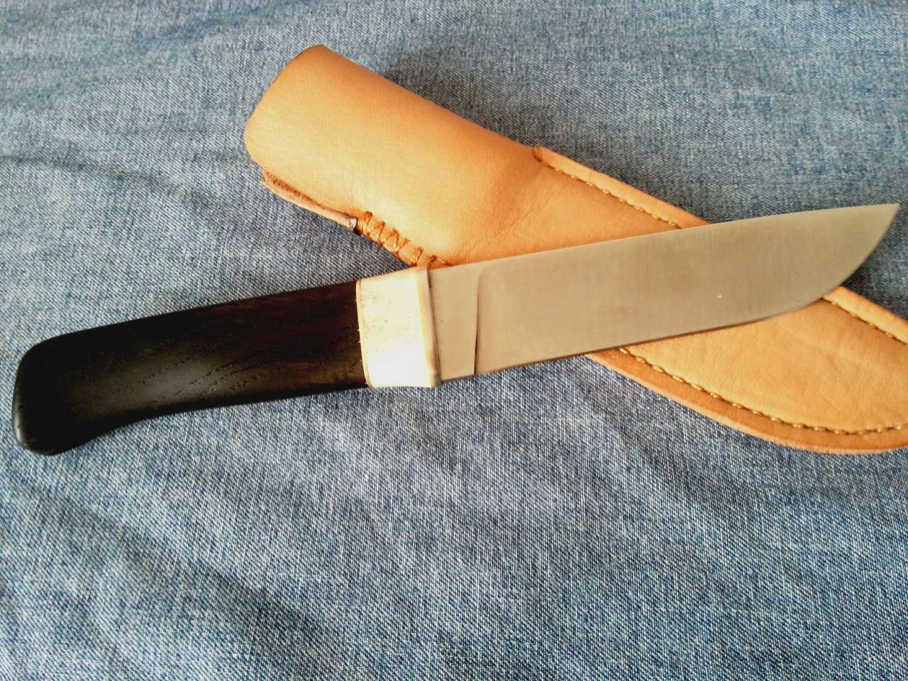 На самом деле достаточно удобно - выступ под мизинец фиксирует рукоять в руках не давая соскользнуть , лезвие не каноническое финское - но это мое пожелание было , ножны тоже не канонические - но тоже по моему заказу ..