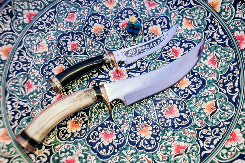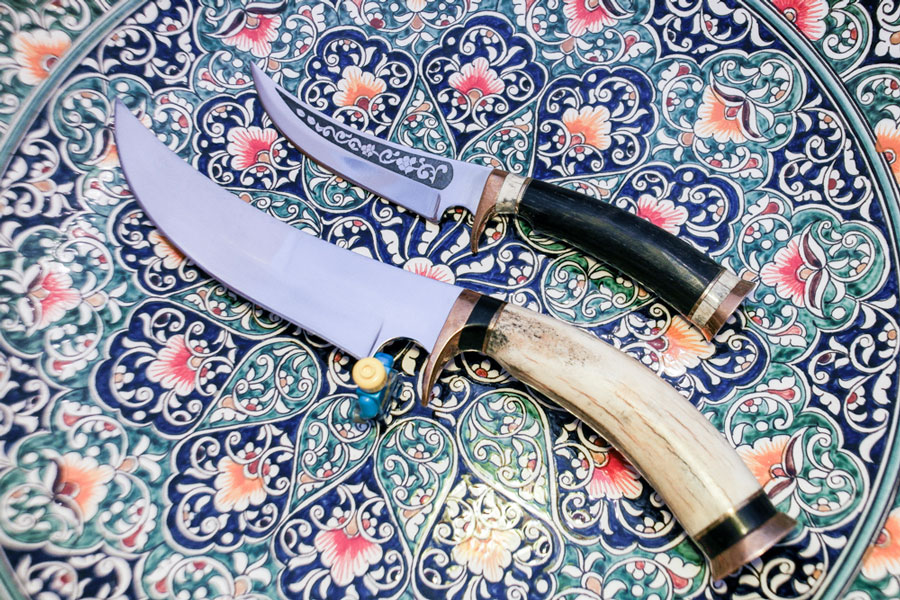 Re: Наши ножиВот бухарские ножи. Если пчак в основном имеет форму чтобы порезать порубить фрукты-овощи, то бухарский более агрессивен и может использоваться как колющее приспособление. Связана такая форма с тем что Бухара на торговых путях находилась, и нож был нужен для всех случаев жизни.