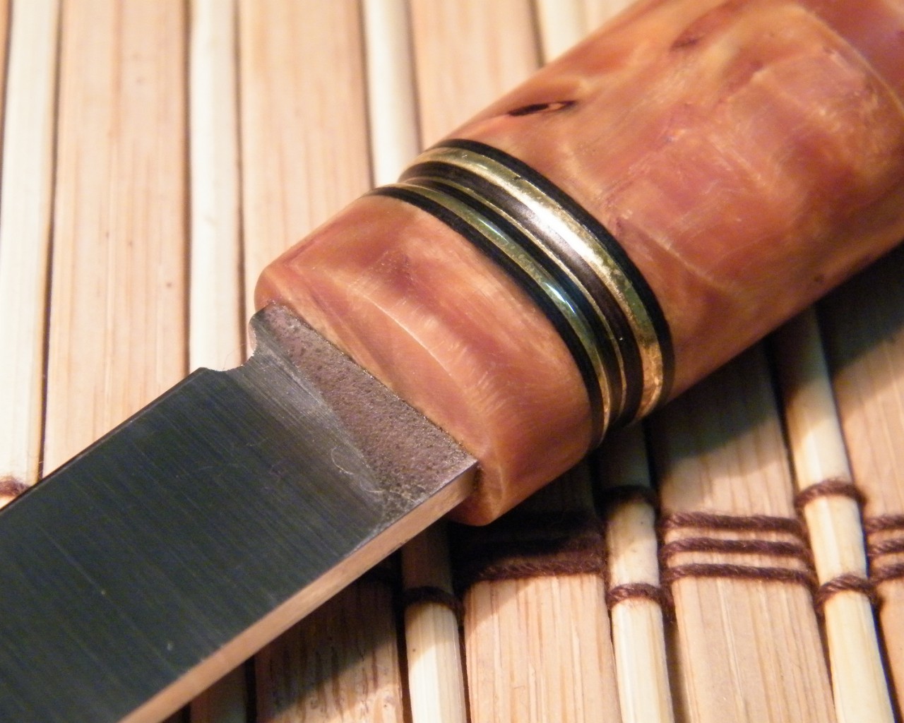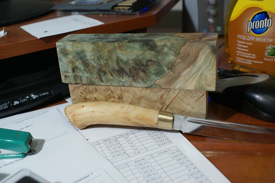 М-390, 85*19*2,3, карельская береза, латунь, кожа. Re: Наши ножиоригинально и мода на якуты вроде учтена и не якут