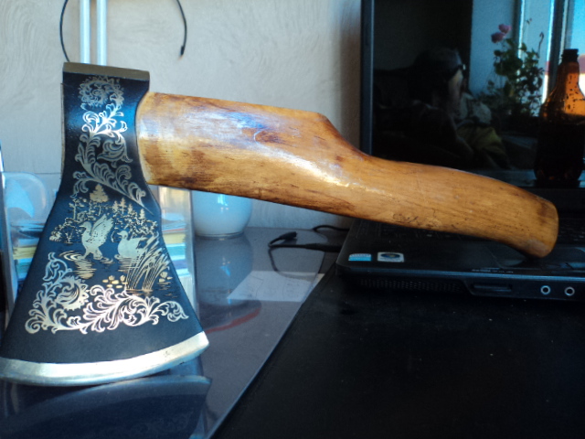 Re: Наши ножи.... Совсем не нож.... Но все элементы есть- Златоустовская сталь, гравировка, травление, позолота ,дерево.... Осталось довести до бритвенной остроты ,одеть форму прапорщика и ......Кто-то упоминал про бритьё шилом,... займусь поисками Златоустовского шила для бритья...