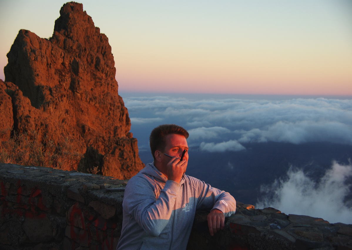 А вот и обещанное фото: Гора Pico de Las Nieves - 1940 метров над уровнем моря. Остров Gran Canaria. Облака ниже меня метров на 500. Прохладно. 9 часов вечера, солнце на закате. На арендованной машине пилили на гору часа 4. Самый серпантинистый серпантин в моей жизни... Кайф... Обещанное фото у пальмы... Опосля вечеринки, состояние усталое, в 4 утра подъём на самолёт... Ремонт опасных бритв, звонить с 11-00 до 23-00, +79267729357, (viber, whats app, telegram, VK), спросить Олега.