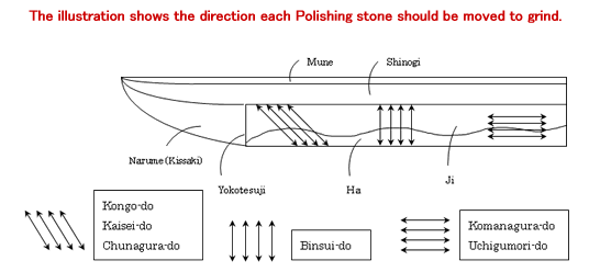 на катана вроде токо Ji, Ha, Shinogi, Mune, Kisaki