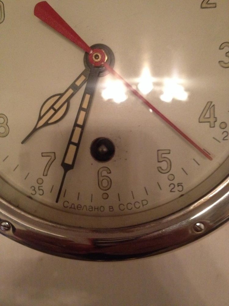 Re: Какие у вас часы?усы в бороде Сбоку часы закрываются, а заводятся именно над цифрой шесть. Завода хватает на восемь дней. Корабельные часы - специфические. Размещены в металлическом герметичном корпусе,закрываются с резиновым уплотнителем, типа чтобы вода не попадала, учитывается, что эксплуатация будет в условиях качки, а также, что корабль железный и всякие блуждающие токи имеются. А вообще это прибор, хронометр, который играет немаловажную роль в штурманском деле, поэтому периодически должен проходить поверку, чистку и выставление хода.