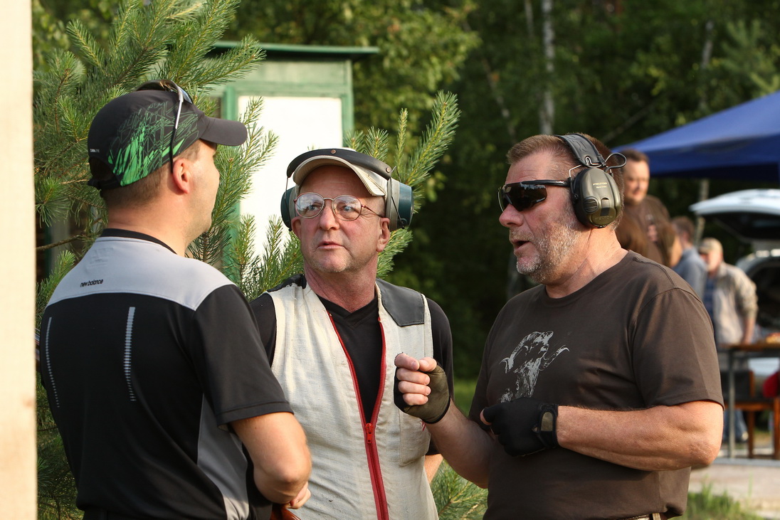 Немного портретов... Есть у нас мсмк Качанов Сергей. Он по центру. Стреляет с таким темпом что подумать страшно.. Тарелки валит почти на машинках. Легенды ходят что перед соревнованиями он закидывался конем накануне. А утром с бодуна темп немного снижался. Но появлялась зрелищность для зрителя. Интересный стрелок.