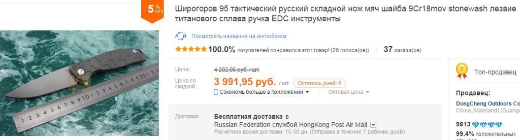 Что самое удивительное, они пытаются копировать эти ножи с поразительным качеством. Вот и пошёл я на АлиЭкспесс за одним из них. Вот что купил. А вот обзор этой китайской реплики от одного из пользователей. Да, собственно, все довольны за такие ножи. Кроме самих широголиков.. Жду приезда ножа. Попробуем в деле... Всё будет ХОРОШО...тел:+79065827134