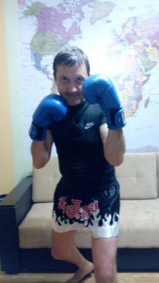 Про тренера пару слов: ему 54 года, в июне летал в Швецию на аттестацию, получил 4 дан! С молодыми на равне физуху проводит. В спаринге с ним я не выстоял и 1 минуты-- 3 лоу-кика, цки по печени и всё  занавес, санитары, нашатырь  54 года дядьке!