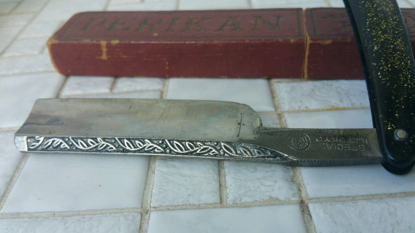 Выводы сделаны не мной, и точного подтверждения нет. Просто Перикан=Пеликан, если пеликан перевести на японский, а потом побуквенно прочитать обратно. На этом и предположения, (не мои). А так, может быть, какой-то коммерсант заказывал их в Германии в 60х годах, почему нет? Судя по обуху с фотографии бритва явно немецкая штамповка 60х годов Уважаемые форумчане нужна ваша помощьна эрле написано SPECIAL K. I. TOKYO
