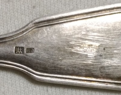 имеет поскольку предмет столовый и судя по пробе клейма посеребрен.