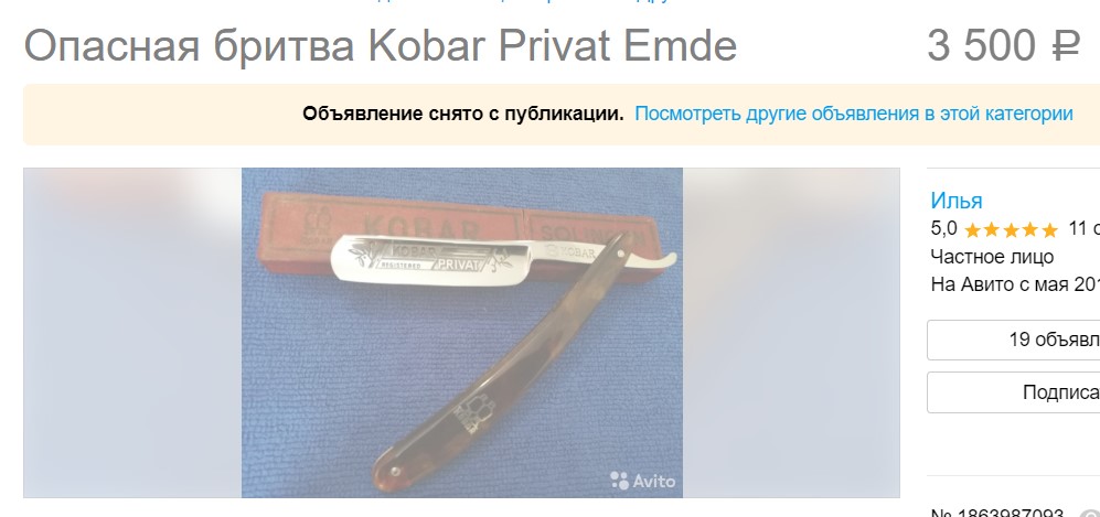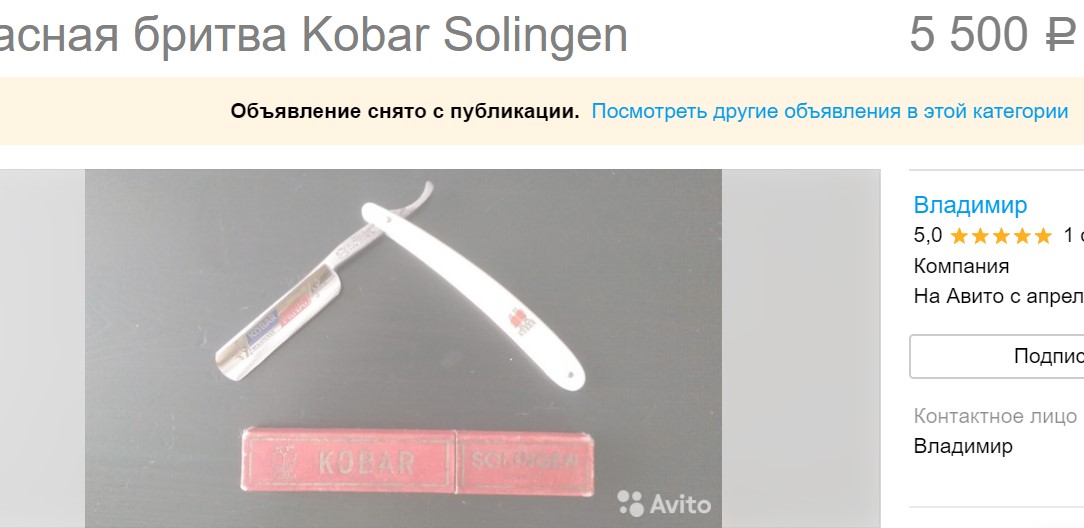 YOUTUBE Олег Бритва INSTAGRAM Олег Бритва Тема для новичков, пытающихся спихнуть на форуме бритвенные обмылки и "исторические артефакты"Добрый вечер! Я как раз новичок. Помогите пожалуйста оценить бритву solingen kobar privat. Фото прилагаю. Если правильно понял по первым сообщениям - около 5000 рублей? Заранее большое спасибо!