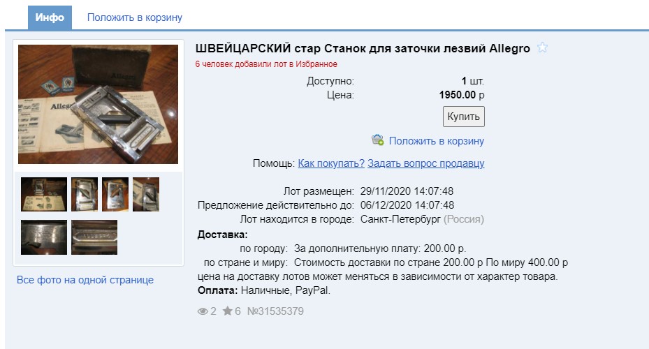 ОценкаTihohod, Эту бритву продают на авито за 2000₽. Пишут типо привезли после ВОВ.