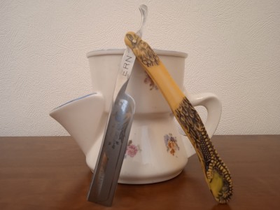 Уважаемые знатоки, прошу вашей помощи в оценке степени редкости и стоимости данной бритвы. В результатах поиска "Гугла" имеются подобные но не аналогичные. Заранее спасибо всем откликнувшимся.