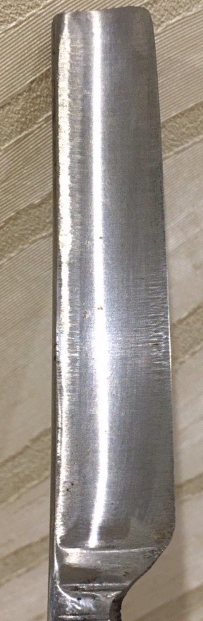 Так толщина и будет одинаковая. Что ты можешь тогда сказать об отсутствии пятки, отсутствии ярковыраженной ступеньки? Добавлено спустя 3 минуты 59 секунд: Хотелось бы помотреть, как можно точить такую бритву, с такой же вогнутостью, что грубые риски идут поперек всего полотна, даже в середине. Re: Zwillingswerk и ERN. Просьба оценить.Пробую добавить ещё фото, надеюсь будут более информативными.