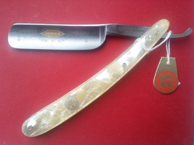 на аукционе с рубля (мешок) покупаются по 3-5 тыс. Мнение о стоимости бритв.Dorko с ручкой под перламутр- такие ручки склонны давать газовую коррозию на бритве, я такие храню в полураскрытом виде завернув в бумажную салфетку и на шкафу, чтобы полотно было выше ручки, по хорошему ручку заменить.
