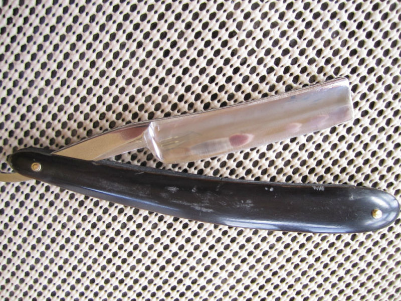 Что же касается цены... Популярность в мире на WADE & BUTCHER за последнее десятилетие сильно возросла и сейчас даже не реставрированные не убитые бритвы трудно найти дешевле 200 баксов, а реставрированные уходят за 300-500 и выше в зависимости от самой бритвы. Тут же мы имеем просто отличную бритву с очень удобным для собственного пользования (а не для брадобреев) размером, что для этой фирмы и возраста достаточно редки (обычно не менее 7/8), да и качество реставрации крайне высоко. Конечно пины тут не родные! Её же реставрировали, значит и пины меняли. Если бы это было бы не так - в районе пина на клинке были бы заметны небольшие потемнения (не разбирая бритву сложно там всё досконально почистить). А ручка родная, из рога - это хорошо видно на последней фотке и на 4й (там скол идёт на ручке, бакелит так не скалывается, только рог). Re: WADE & BUTCHERm-s-r, ручка - прессованный рог.